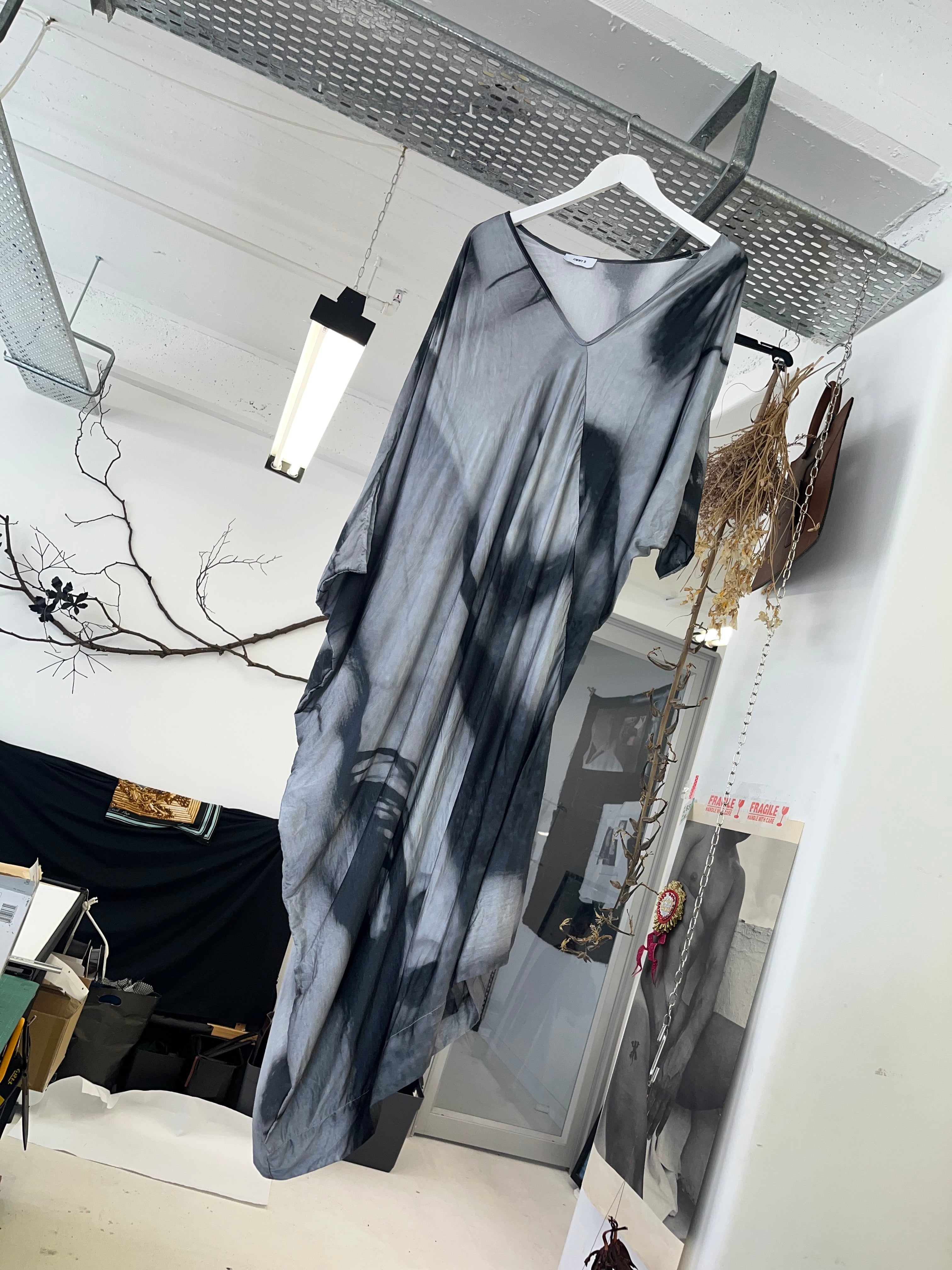 If ever a dress of ours deserved the "iconic" title it would be this! Many MANY seasons in and this dress is still a fave! Simple geometric shapes collide to create this stunning dress. One long rectangle cut on the bias bisected by a smaller rectangle drape like a dream around the body make for a flattering silhouette that's beautifully drapey through the top and narrower through the skirt. The dress is also completely reversible, with the deep V at the back. A must have piece.